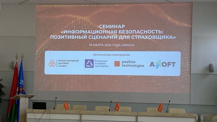 Группа компаний «Международный деловой альянс», Positive Technologies и «Аксофт Интернешнл» при поддержке Белорусской ассоциации страховщиков организовали 19 марта 2025 года семинар «Информационная безопасность: позитивный сценарий для Страховщика», который состоялся на площадке «Центр повышения квалификации руководящих работников и специалистов финансовой системы». Семинар собрал 58 участников, включая 25 представителей 14 страховых организаций Республики Беларусь, что подтверждает значимость темы информационной безопасности для страхового сектора.